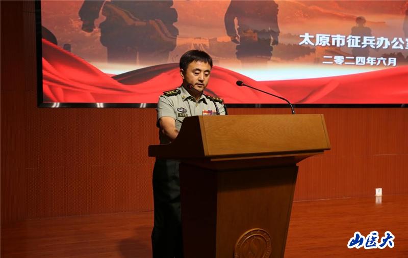 彭月蘭在致辭中對太原警備區和迎澤區武裝部長期以來對我校國防教育工作的悉心指導和堅定支持表示感謝,并介紹了學校國防教育和征兵工作進展情況。她強調,履行兵役是每個公民不可推卸的責任和崇高使命。學校將持續深入學習貫徹習近平強軍思想,堅決貫徹黨中央、中央軍委關于大學生征兵工作的決策部署,將大學生征兵工作作為重要政治任務,堅持不懈推進。她鼓勵廣大青年要積極響應祖國召喚,踴躍參軍報國,為建設世界一流軍隊的偉大事業貢獻青春和力量。