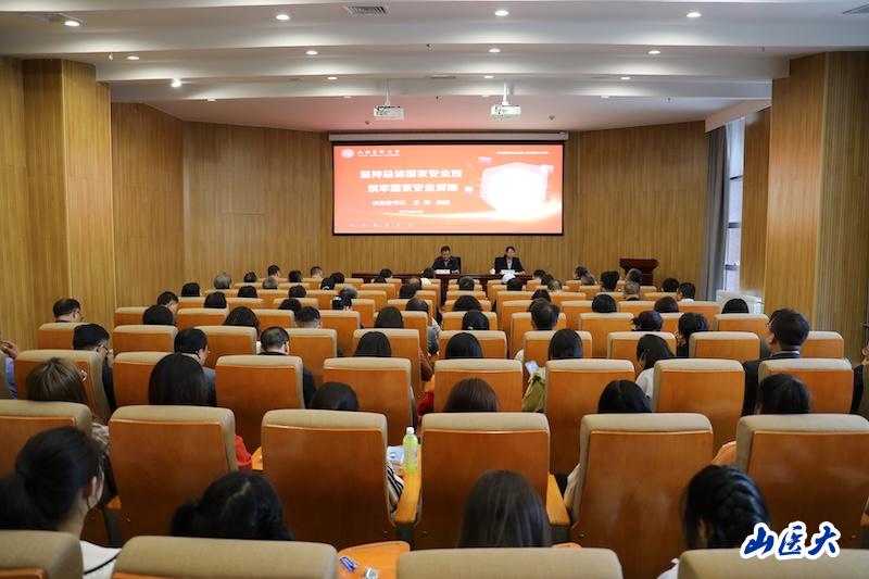王軍指出,總體國家安全觀是我們黨歷史上第一個被確立為國家安全工作指導思想的重大戰略思想,是中國共產黨和中國人民捍衛國家主權、安全、發展利益百年奮斗實踐經驗和集體智慧的結晶,是新時代國家安全工作的根本遵循和行動指南。高校作為落實立德樹人根本任務的教育園地、意識形態工作的前沿陣地、國家前沿科技研發的重要組成,面向師生開展國家安全教育尤為重要,必須牢固樹立總體國家安全觀,毫不動搖堅持黨的絕對領導,健全完善高校安全治理體系,有效防范化解各類風險隱患,筑牢學校安全發展屏障,以推動學校高質量發展護航中華民族偉大復興。