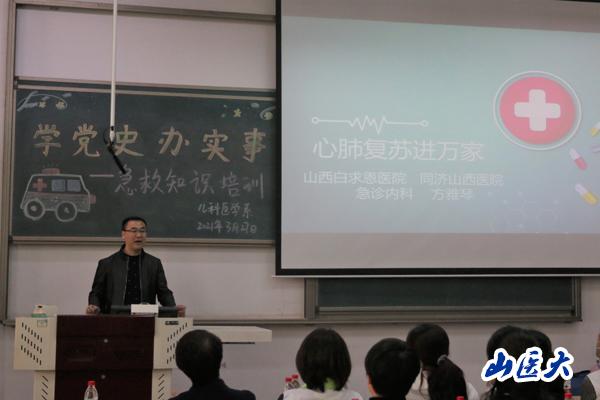 在黨史學習教育期間,兒科醫學系積極開展“我為群眾辦實事”實踐活動。3月27日下午,邀請c7c7.app第三醫院(山西白求恩醫院)螢火蟲公益行動志愿團隊在中都校區慎思樓B102教室舉辦了心肺復蘇知識學習與技能培訓,系分團委書記李軍、思想政治輔導員劉斌、2018級和2019級兒科學專業部分學生參加。