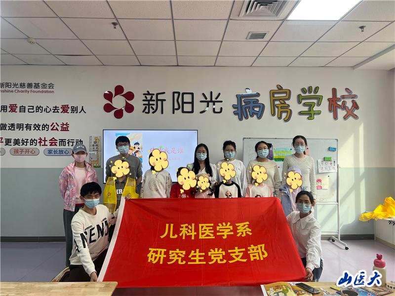 4月10日下午,兒科醫學系研究生黨支部在省兒童醫院血液科“新陽光病房學校”開展“醫者童心 慧聲繪色”主題黨日活動,本次活動由輔導員范晉楠帶隊。