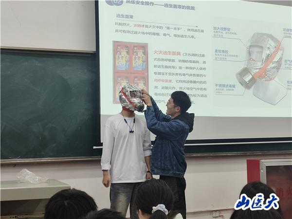培訓伊始,宣講員從經濟安全、人身安全、交通安全、消防安全四個方面作了專業講解,讓大家深刻認識到安全的重要性。隨后,高空墜物、打架斗毆、刷單返利、路怒駕駛、電動車違規充電、火災現場等事故案例視頻,警醒大家筑牢安全意識。實踐教學環節,宣講員手把手教同學們消進行防滅火器的使用、防煙面罩的佩戴及室內消火栓的應急操作,極大的提高了應急處理能力,每位參加培訓同學都進行實操,操作合格者獲得電子結業證,確保了宣講培訓效果。