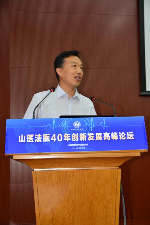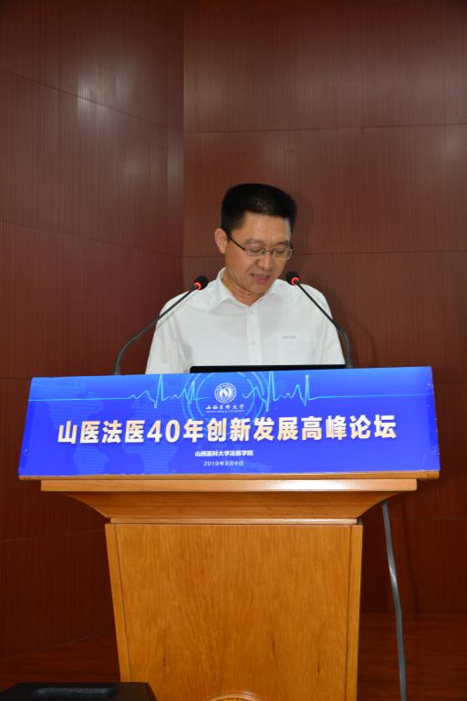 2019年9月6日下午,為總結法醫學院法醫學專業40年辦學經驗,推動高水平研究教學型醫科大學和法醫學院建設,作為獻給學校百年華誕的禮物,“山醫法醫40年創新發展高峰論壇”在我校中都校區圖書館一層會議室成功舉行。我校校長李思進教授、中國工程院院士/河北醫科大學副校長叢斌院士、公安部物證鑒定中心副主任孫云青教授、山西省公安廳警務技術二級總監趙芳芳、山西省高級人民法院證據技術中心侯登云主任、山西省人民檢察院第八檢察部白建云主任、山西省司法廳司法鑒定管理處李恒鵬處長蒞臨高峰論壇。參加本次高峰論壇的還有法醫學院歷任領導、各實習基地負責人、校友以及法醫學院的老師和同學們。論壇由法醫學院黨總支書記、院長、司法鑒定中心主任贠克明主持。
