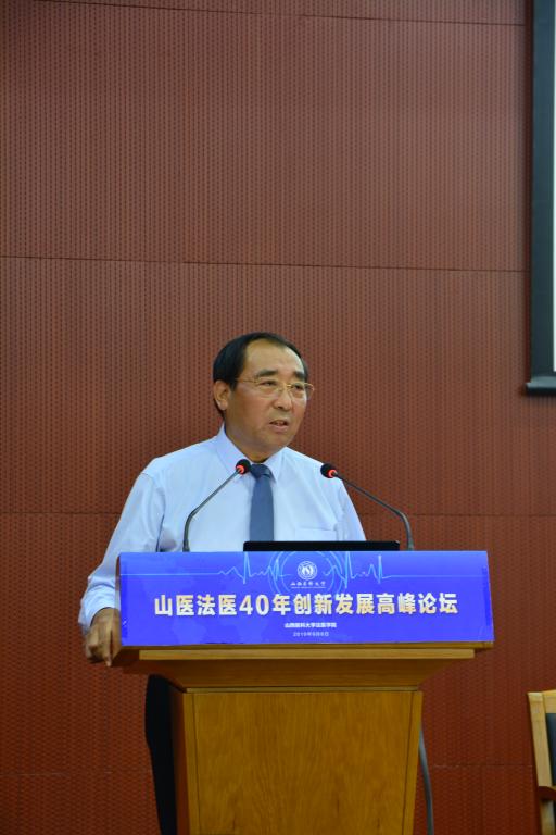 李思進校長首先在論壇上致歡迎辭并總結了法醫學院堅持“公安-院校聯合辦學、協同創新、檢驗鑒定模式”發展法醫學教育事業的基本經驗。他代表我校全體師生員工在學校百年華誕之際對論壇的舉辦表示熱烈?:?,向蒞臨論壇的各位專家教授表示熱烈歡迎,向長期以來對我校法醫學專業給予關心、支持、指導、幫助的各位領導和專家學者們表示衷心感謝。他在講話中回顧了我國和我校高等法醫學專業教育的建設發展歷程,闡述了舉辦“山醫法醫40年創新發展高峰論壇”的重要意義,總結了過去40年法醫學專業最成功的經驗就是協同創新,從1980年山西省公安廳和c7c7.app(原山西醫學院)聯合辦學開始,法醫學專業就是協同創新的產物。他指出,要加強法醫學專業的學科平臺建設,不斷的凝聚、凝練學科方向,組織好學科隊伍進行科研攻關,爭取出更多的高級標志性成果,提升法醫學專業的創新水平和競爭力。
