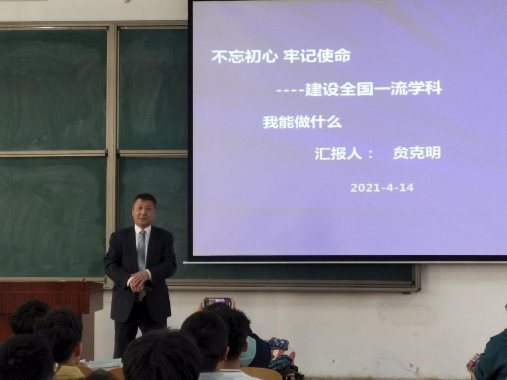 2021年4月14日下午四點在慎思C101教室,法醫(yī)學院黨總支書記、院長贠克明教授對2018級、2019級、2020級全體本科生開展“不忘初心、牢記使命——建設全國一流學科我能做什么”的專題思想政治教育講座。