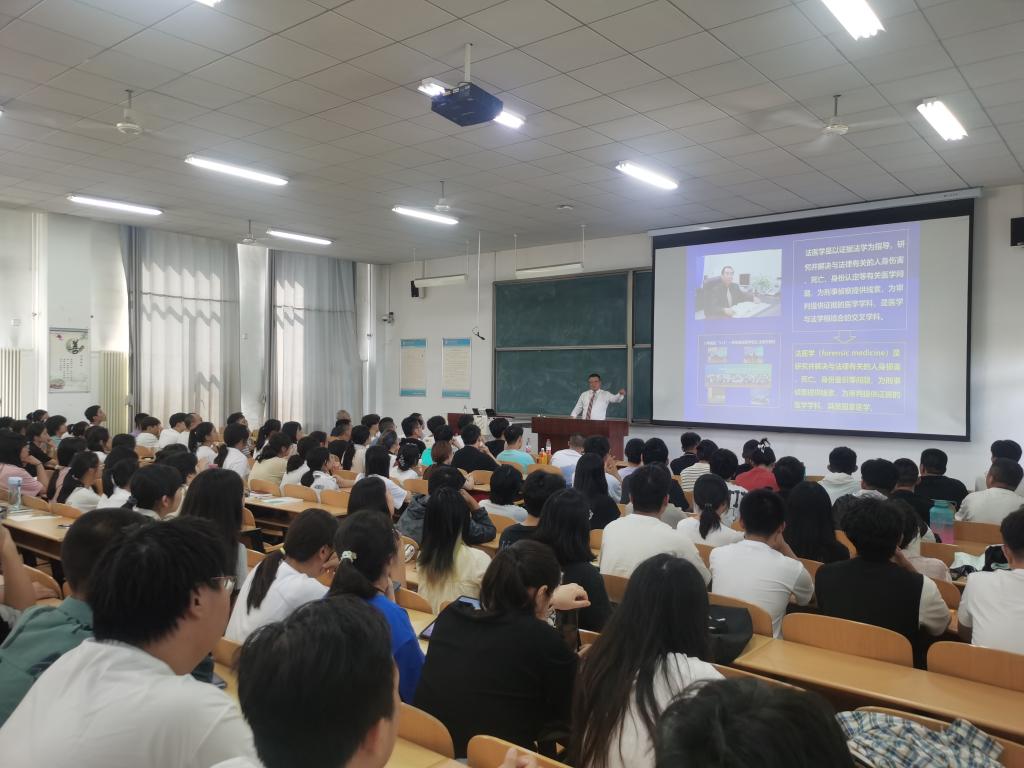 法醫(yī)學(xué)院院長贠克明分別從法醫(yī)學(xué)職業(yè)定義和學(xué)科組成、中國法醫(yī)的歷史、山醫(yī)法醫(yī)的誕生和成長歷程、法醫(yī)職業(yè)發(fā)展要求、法醫(yī)學(xué)科和職業(yè)展望等方面做了介紹。講座中贠克明院長著重就法醫(yī)學(xué)尤其是中國法醫(yī)學(xué)的發(fā)展史,我校法醫(yī)學(xué)專業(yè)在中國法醫(yī)學(xué)發(fā)展過程中的主要貢獻(xiàn)及成就,以及法醫(yī)學(xué)成為一級學(xué)科后面臨的新機遇和挑戰(zhàn)進(jìn)行了詳細(xì)講解。隨后,從學(xué)業(yè)、生活、就業(yè)選擇等方面講述了如何成為優(yōu)秀的法醫(yī)專業(yè)畢業(yè)生,為新生新階段的學(xué)習(xí)生涯指明前進(jìn)的方向并提出了殷切希望。最后,對新生進(jìn)行了安全教育,重點強調(diào)同學(xué)們一定要謹(jǐn)防電信詐騙、切不可掉入“校園貸”的圈套,遇事及時尋求老師、同學(xué)及公安人員的幫助,切實保護(hù)自身利益,始終將安全放在第一位。