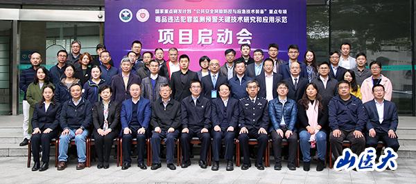 11月14日,國家重點研發(fā)計劃“公共安全風險防控與應急技術(shù)裝備”重點專項“毒品違法犯罪監(jiān)測預警關鍵技術(shù)研究和應用示范”項目啟動會在江蘇南京中國藥科大學舉行,我??萍即Ω貝Τね蹕?、法醫(yī)學院尉志文副教授率隊參加。來自政府、高校、企業(yè)、醫(yī)療團隊等四方的專家精英匯聚一堂、強勢組隊,攜手探索對抗高科技毒品的破解之法。中國藥科大學黨委書記金能明,教育部、國家禁毒委員會辦公室、咨詢專家組、各課題單位等專家領導出席本次會議。