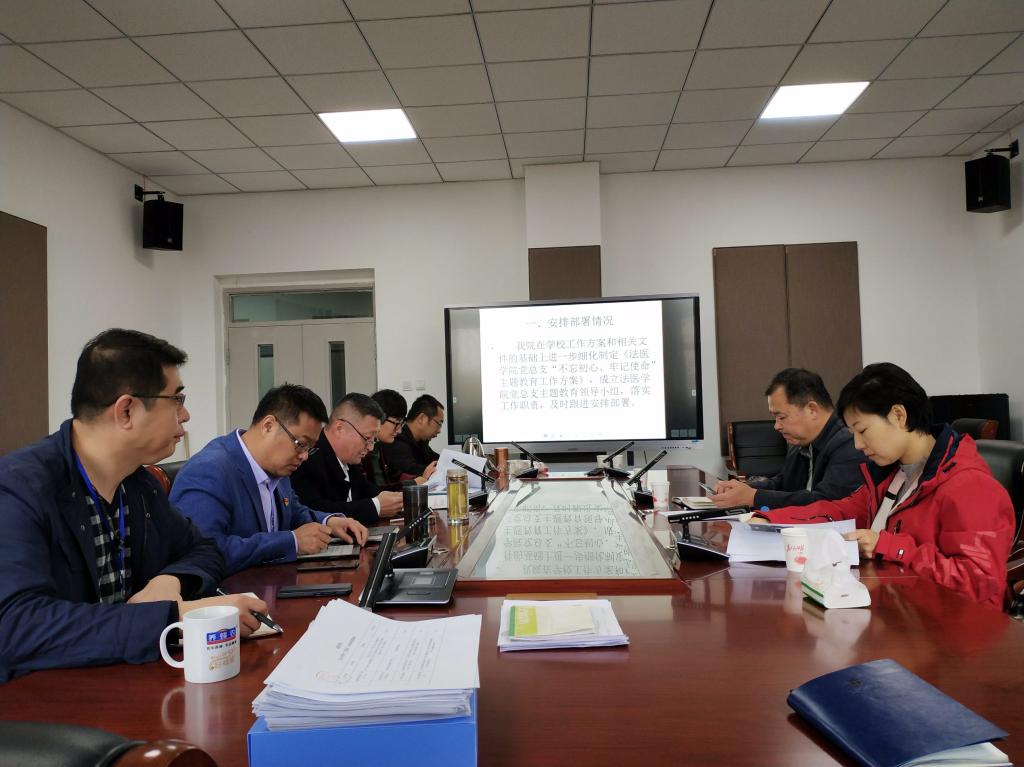 張強介紹了省委對我校主題教育開展的督導情況,并說明了此次督導的目的、要求、內容與方式。學院黨總支書記、院長贠克明從安排部署、學習教育、調查研究、開展檢視、專項整治、整改落實和民主生活會情況七個方面對學院主題教育的開展情況向督導組作了全面匯報。之后,督導組又通過查閱資料、現場交流等方式,進一步詳細了解了我院主題教育工作的進展情況。