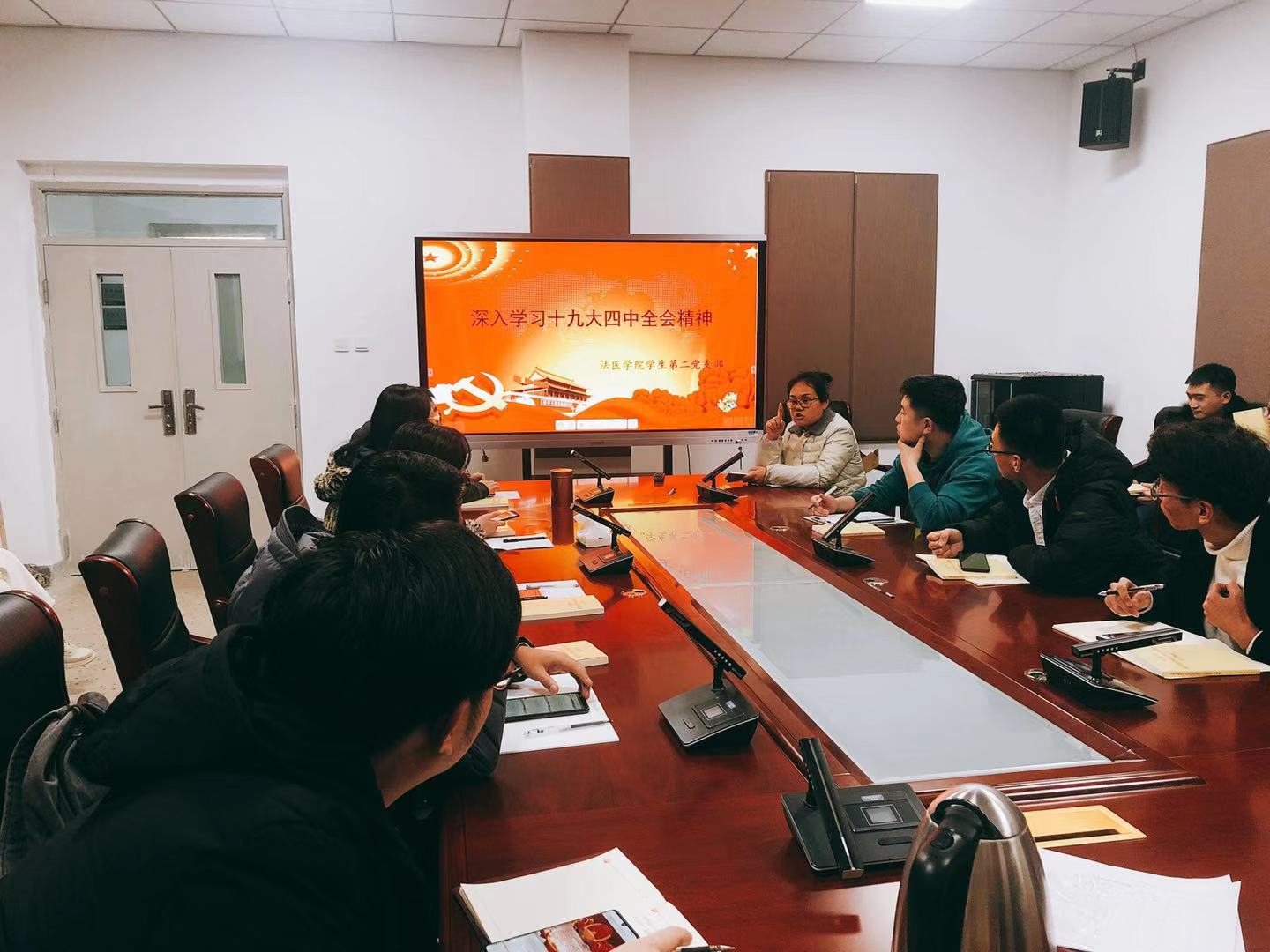 為深入貫徹黨的十九屆四中全會(huì)精神,進(jìn)一步提升學(xué)生黨員理論學(xué)習(xí)水平及執(zhí)行能力,11月26日中午,法醫(yī)學(xué)院學(xué)生第二黨支部在中都校區(qū)明德樓B座會(huì)議室召開了“十九屆四中全會(huì)精神”學(xué)習(xí)專題會(huì)議。會(huì)議由支部書記楊蓉主持,全體黨員參加。