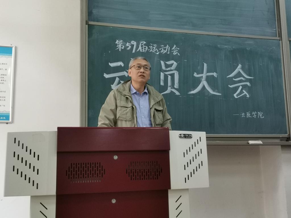 李書記進行了激情飽滿的動員講話,參加體育賽事是給大家一個鍛煉自己的機會和互相交流的平臺,此外李書記還講述了法醫學院的過去和目前發展情況,指出互幫互助、團結奮進是我們法醫人的精神,法醫學院的發展需要我們每個人的努力,相互成就才會使法醫學院越來越好。