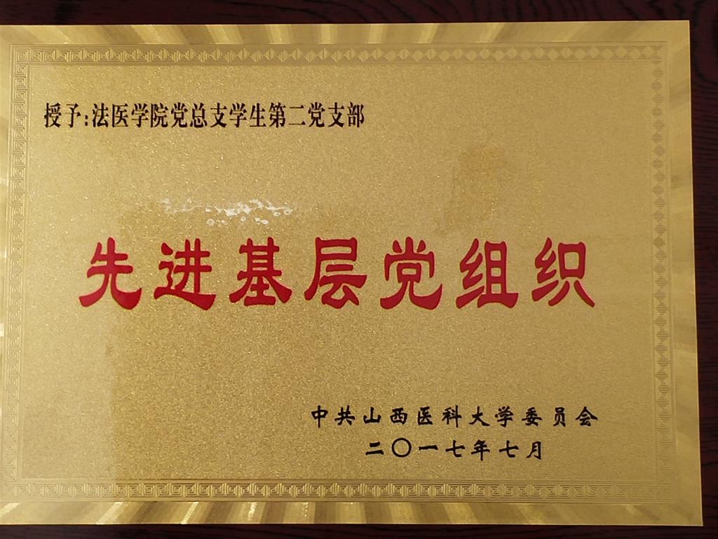 法醫學院黨總支學生第二黨支部榮獲校“先進基層黨組織”榮譽稱號