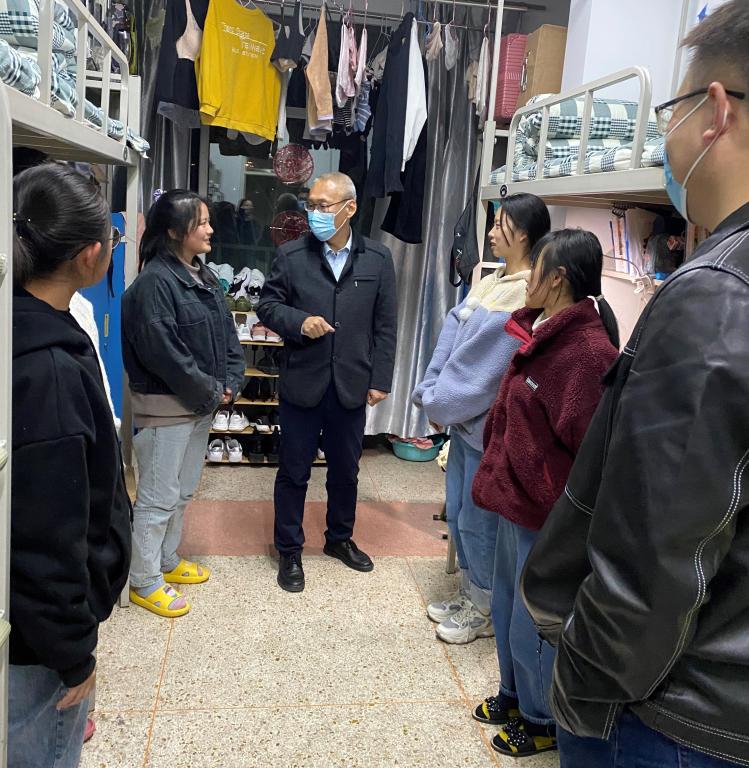 李書記和幾位輔導員老師還與每個在宿舍的學生進行了面對面的慰問與交流,詢問了學生們近段的學習和生活情況。