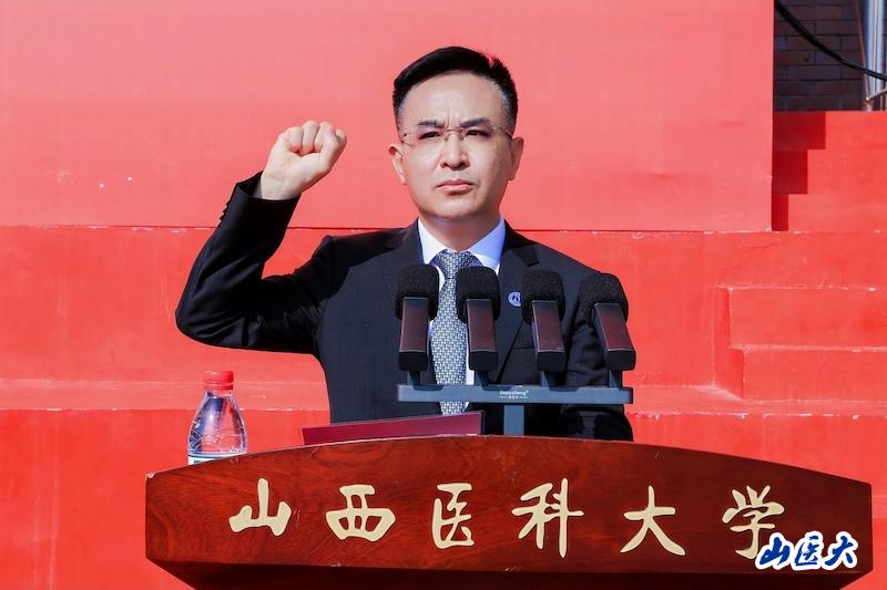 解軍在講話中代表全校師生醫護員工對2025級新同學表示熱烈歡迎,對晉中市委、市政府帶給全體新同學們的溫暖與關懷表示感謝。他指出,學校在106年的辦學歷程中,積淀的優良傳統和文化品質傳承歷久彌新,閃耀著時代光芒。我們山醫,是一所浸潤五四精神、傳承紅色血脈的百年醫學學府,一所勇挑時代重任、服務國家戰略的百年醫學學府,一所不斷砥礪奮進、勇于追求卓越的百年醫學學府。山醫的百年榮光,由前輩鑄就;山醫的未來輝煌,將由同學們書寫。作為師長和校長,解軍以“做‘有理想、敢擔當、能吃苦、肯奮斗’的新時代好青年”為題,向新同學們提出四點希望:一是立受閱方陣之志,鑄就忠誠報國魂;二是淬鐵血擔當之勇,磨礪攻堅硬脊梁;三是歷千錘百煉之苦,鍛造過硬真本領;四是揚團結奮進之風,譜寫時代新華章。他祝愿同學們在山醫這片孕育英才的沃土上,學有所成,業有所精,夢想成真,前程似錦。