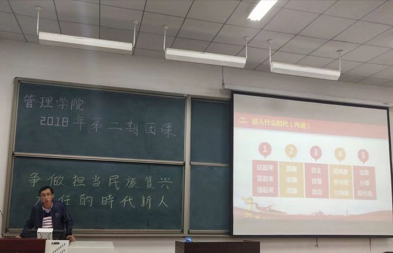 10月26日晚上六點半,管理學院2018年第二期團課在篤行樓C座102教室舉行,主題為“爭當擔作民族復興大任的時代新人”,由馬克思學院的鄧海龍老師主講,分團委書記喬曉梅老師主持,學院16級和17級的同學共同參加了本次團課的學習。