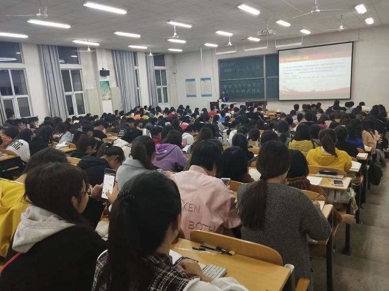 鄧海龍老師從究竟何為時代定義、中國發展進入了什么時代、為什么說中國走進新時代、新時代的使命是什么、誰主宰著新時代五個要點講述了我國現在的發展,深度剖析了新時代的內涵,引經據典,促使同學們更好的理解什么是新時代、怎樣建設新時代。臺下的同學們認真聽講,不時與臺上老師進行互動。鄧海龍老師強調,只有扣好扣子、定好位子、樹好靶子、找好路子,才能做好一個有理想有本領有擔當的、堪當民族復興大任的合格的時代新人,鄧海龍老師的精彩講解獲得了在座同學的熱烈掌聲。