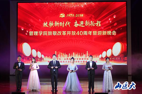 放歌新時代,歌唱改革開放的豐功偉績;奮進新征程,譜寫百年山醫的輝煌明天。12月24日晚,我校管理學院致敬改革開放40周年暨迎新晚會在中都校區大學生劇場隆重舉辦。校黨委常委、紀委書記黨志峰,校紀委辦公室、學生處、團委、保衛處、人事處、第二臨床醫學院、馬克思主義學院、兒科醫學系、檔案館等部門和院系的負責人蒞臨晚會;省衛健委、山西中醫藥大學、太原清控科創公司、山西興育心理咨詢中心、華潤醫藥、華大基因等單位的嘉賓和校友應邀出席了晚會;學院師生共800余人參加了晚會。