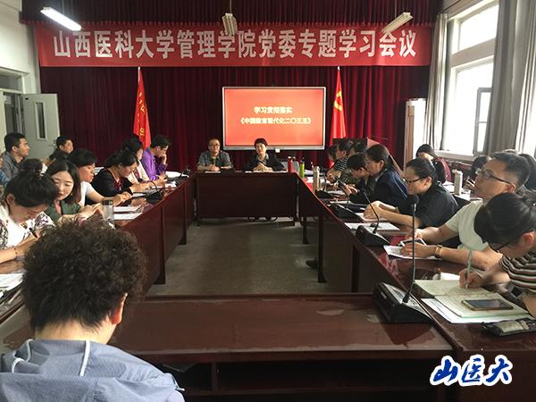 5月16日下午,管理學(xué)院在學(xué)院會(huì)議室召開理論學(xué)習(xí)會(huì)議,專題學(xué)習(xí)《中國教育現(xiàn)代化2035》文件精神。學(xué)院黨政領(lǐng)導(dǎo)和全體教職工參加了學(xué)習(xí),會(huì)議由學(xué)院黨委書記李紅梅主持。
