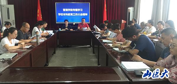 會上,管理學院黨委書記李紅梅、院長程景民分別解讀了校黨委書記張俊龍題為《堅持正確辦學方向,深化本科教育教學改革,全面推進高水平研究教學型醫科大學建設》的講話和校長李思進題為《堅守不忘初心,牢記育人使命,努力培養山西醫學領軍人才和百姓家門口的好醫生》的工作報告。會議要求,全院教師要始終貫徹學校本科教育工作大會精神,嚴格把好教學關,做好本職工作,為學:脫г旱姆⒄固磣┘油。