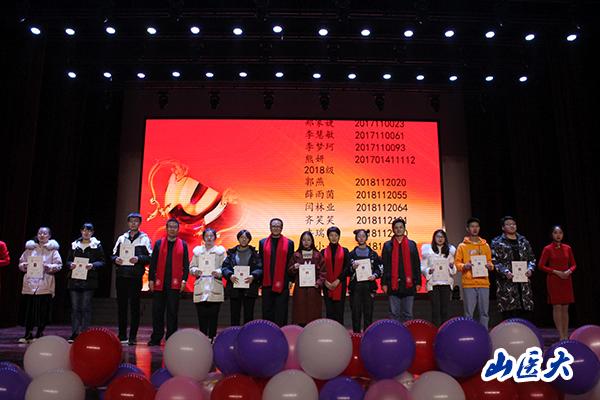 晚會內容豐富多彩,可謂百花齊放:舞蹈、合唱、話劇、情景劇、吉他彈唱、詩歌朗誦……仿佛置身于藝術的殿堂。歌曲《畫》,低音婉轉,高音悠揚;小品《你的模樣》,展現了鄉村教師扎根基層、默默奉獻,為改變一代又一代農村孩子的命運作出的重要貢獻;老師們演唱的經典老歌,以及臺上臺下互動齊唱的《我和我的祖國》、《不忘初心》等等,唱出了師生對祖國的深情摯愛,唱響了筑夢奮斗的時代強音;由十叁樂隊帶來的歌曲串燒《再見杰克,嘿姑娘》氣氛熱烈,嗨翻全場;最后的手語舞詩朗誦《國家》,規:甏,國旗高揚,在場師生全體起立,激情高唱,同向祖國致敬,共祝未來更美。晚會還對一年來在學院建設中表現突出的青年學生進行了表彰。
