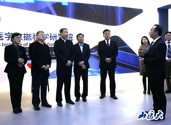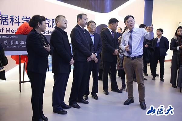 研究院副院長騫憲忠、李繼剛等人陪同領導參觀研究院,并向與會領導對研究院和健康醫療大數據平臺的建設情況進行了介紹。