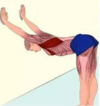 9.面向墻壁一定距離站立,上身前傾平行于地板,雙臂伸直靠向墻面,保持背部平坦。