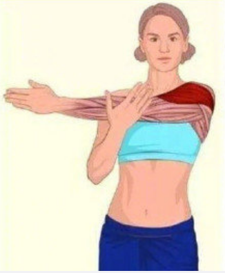 3.站立,左手手臂伸直橫于胸前,右手輕輕按壓左手臂,另一只手重復練習;