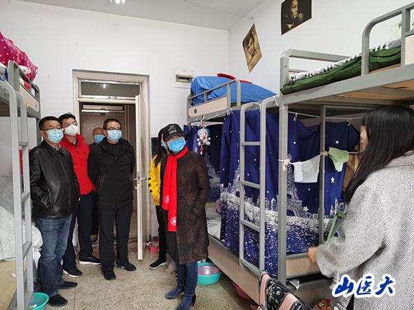 4月10日下午,學院領導班子全體成員到學生宿舍走訪看望了返校學生,了解了學生們假期期間的學習生活情況、返:蟮男棖笠約氨弦德畚淖急蓋榭。他們囑咐同學們,在校期間要做好個人衛生和防護,做好晨午晚三檢和健康管理、生活軌跡的記錄,服從配合學校封閉管理,順利完成畢業論文答辯。同學們也紛紛表示,一定珍惜在學校的大學時光,為自己的階段性學業畫上圓滿句號。