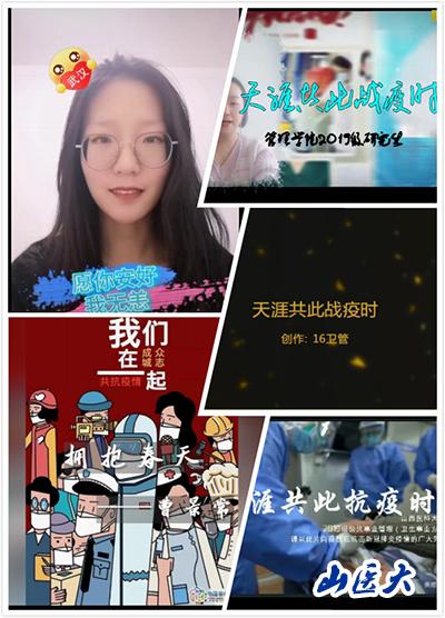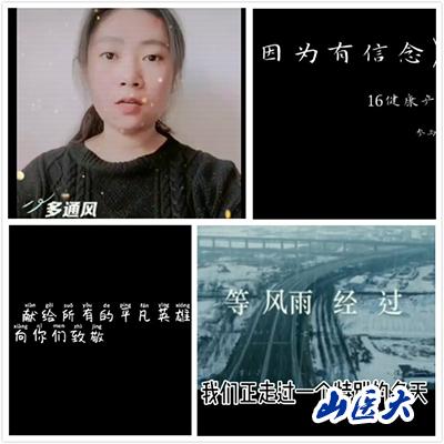 管理學院各年級、班級團支部積極響應,共制作誦讀作品視頻43篇,半數以上學生參與其中,達到各級團支部全覆蓋。同學們或獨誦,或兩兩一組,或宿舍一體,或全班誦讀,用他們真摯的情感和聲音,分享戰“疫”所聞所見的心得感悟,致敬抗疫一線的最美英雄。雖然同學們不在校園,分布在全國各地,卻同心共情,天涯共此時,在家里分段錄制、后期制作剪輯,用新媒體方式,以管理學院師生傳統特有的誦讀活動方式,歌頌了抗疫英雄的義不容辭、勇敢擔當,抒發了同心協力、攜手并肩、人類命運共同體的情懷,表達了抗擊疫情、人人有責的決心和信心。