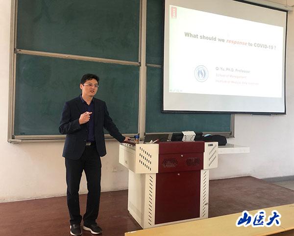 4月23日上午,管理學(xué)院副院長于琦教授在中都校區(qū)篤行B205教室,為2016級信息管理與信息系統(tǒng)(醫(yī)藥方向)專業(yè)學(xué)生講授了題為《以“數(shù)”制“疫”:大數(shù)據(jù)主力新冠肺炎科研攻關(guān)》的“返校第一課”,30名學(xué)生代表到場聽講。