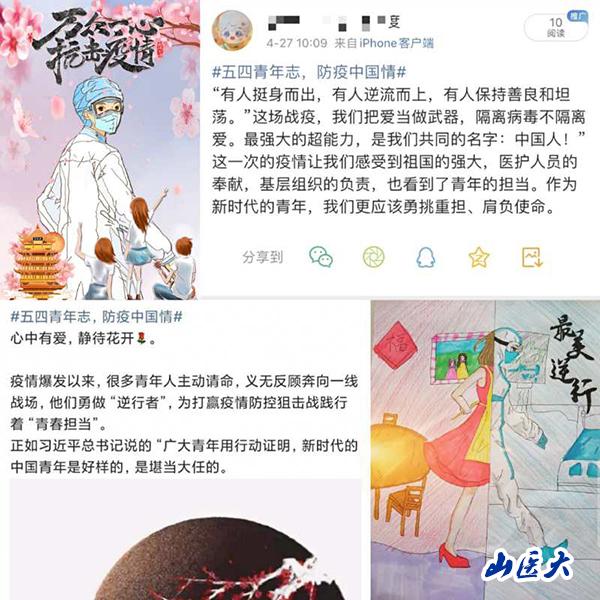 學(xué)院廣大同學(xué)踴躍參與,同學(xué)們熱情高漲,分別以不同形式表達(dá)著他們對(duì)于五四精神的理解和全國(guó)共同抗疫中的情感經(jīng)歷。