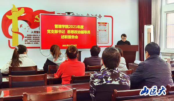 為深入貫徹新時代黨的建設(shè)新要求,落實(shí)立德樹人根本任務(wù),扎實(shí)推進(jìn)學(xué)院黨建思政工作落地、落實(shí)、落細(xì),2021年12月31日下午,管理學(xué)院在至善C座305會議室召開了2021年度黨支部書記、輔導(dǎo)員述職報告會。學(xué)院領(lǐng)導(dǎo)班子成員、黨支部書記和輔導(dǎo)員參加了會議。會議由學(xué)院黨委副書記燕燕主持。