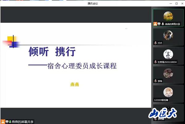 疫情之下,做好大學生心理健康普查及宣傳教育是高:狹Α翱掛摺鋇鬧匾換。為了扎實推進疫情防控期間學生心理健康教育工作,充分發揮班級、宿舍心理委員的學生自助、互助作用,筑牢抗“疫”心理防線,增進班級心理委員對其工作的理解,提升“助人自助“的心理學專業知識水平,4月14日,管理學院開展了宿舍心理委員成長培訓活動。此次培訓在學院統籌安排下開展,作為學院“同心戰役 我們如此熱愛山醫”系列活動之一,由管理學院黨委副書記燕燕主講,學院各專業年級心理委員共259名同學參與了培訓。