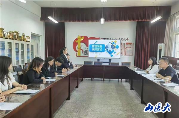 為及早引導學生樹立正確就業觀念,切實提高學生求職能力,6月13日上午,管理學院組織2020級智能醫學工程專業及信息管理與信息系統專業開展模擬面試活動。評委由管理學院黨委副書記燕燕,輔導員喬曉梅、岳紅娟、張海燕、郝亞楠以及圖書館劉穎。2022屆畢業生代表作為學生評委。