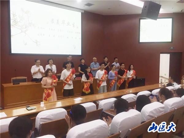 會上,院長于琦宣讀了學院關于表彰2022屆“最美畢業生”的決定。自2019年開展“最美畢業生”評選推介活動以來,學院累計評選出40名“最美畢業生”。他們或專業成績優異,或科研創新成果突出,或積極開展貧困地區支教、疫情防控志愿,或投筆從戎保家衛國,或作為學生干部自覺服務學生,或作為學生黨員充分發揮先鋒模范作用,腳踏實地走好人生的每一步,躬身踐行著“醫理博精,德能高邃”校訓,弘揚著“求實精進、堅韌弘毅”的山醫精神,用優異的成績、堅定的信念闡釋了當代青年的使命擔當。