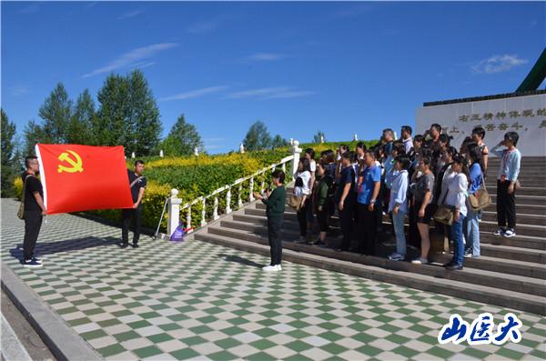 在右玉縣“綠化豐碑”雕塑前,全體學(xué)員集體重溫入黨誓詞。在管理學(xué)院黨委書記李紅梅領(lǐng)誓下,黨員們舉起右拳,面對鮮紅的黨旗莊嚴(yán)宣誓,在錚錚誓言中,進(jìn)一步強(qiáng)化黨員身份意識、宗旨意識和責(zé)任意識,深刻領(lǐng)會共產(chǎn)黨員的政治責(zé)任、工作擔(dān)當(dāng)和光榮使命,更加堅(jiān)定為黨的事業(yè)奮斗終身的決心和信念。