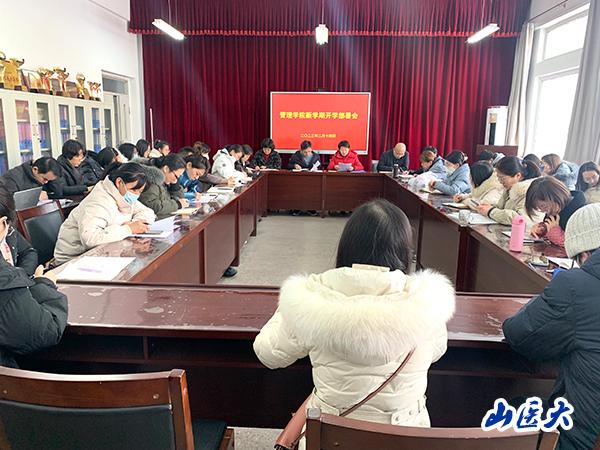 2月14日下午,管理學院在中都校區至善C座三層會議室召開了2023年度新學期工作部署會議。學院領導班子、全院教師參加了會議。會議由學院黨委書記李紅梅主持。