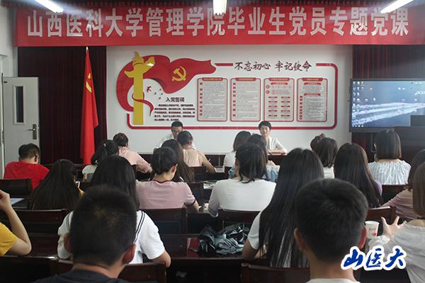 袁永旭副院長在主持活動中,希望畢業生黨員通過本次專題教育進一步強化黨員意識,嚴格遵守黨章黨規,離校前配合支部書記,認真完成組織關系轉接等手續。