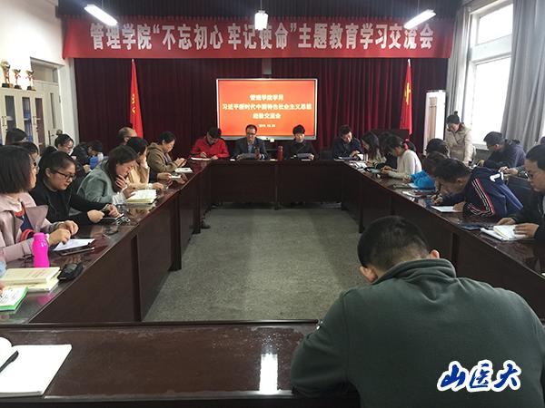 10月30日下午,管理學院在學院會議室召開學用習近平新時代中國特色社會主義思想經驗交流會,學院全體教工黨員及學生黨員代表共60余人參會,學院黨委書記李紅梅主持會議。