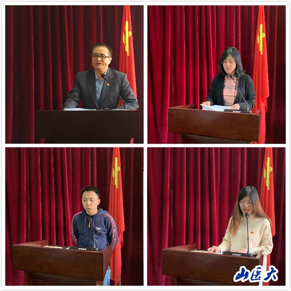教工第四黨支部書記宗蘇秋從高等學校教師以德立身、以身立教、以才育人、以愛化人的方面分享自己的體會,要甘當人梯,甘當鋪路石,成為塑造學生品格、品行、品味的“大先生”。學生第四黨支部書記何小峰結合自身經歷,分享了如何在教書育人過程中引導學生正確的思想方向、培養愛國主義精神、傳播優秀傳統文化、樹立擔當意識和養成良好學習習慣,培養德才兼備的社會主義建設者和接班人。學生第三黨支部黨員席芳潔圍繞主題教育“守初心、擔使命、找差距、抓落實”的總要求,匯報了自己在學習、協助老師工作、社會實踐、科學研究等方面的現實表現,深刻剖析了存在的問題和不足,為今后的努力指明了方向。