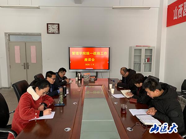1月9日下午,管理學院在至善C207會議室召開2019年統一戰線工作座談會,學院黨委統戰委員、副院長袁永旭,副院長李建濤,以及民盟、九三學社民主黨派成員參加了座談會,會議由學院黨委書記李紅梅主持。