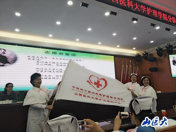 山西省紅十字會白冰副會長在致辭中指出,c7c7.app護理學院能夠成為總隊的第318支分隊,是護理學院的光榮,也是山西省紅十字會的光榮。第318支分隊要繼續傳承和弘揚紅十字會的“人道、博愛、奉獻”精神,踐行“奉獻、友愛、互助、進步”志愿精神,繼承和發揚南丁格爾獎獲得者們愛崗敬業、恪盡職守、無私奉獻的優秀品質,行仁愛之術,育仁愛之人,前赴后繼,為南丁格爾志愿護理服務總隊及護理學院分隊的護理志愿服務活動再創佳績。