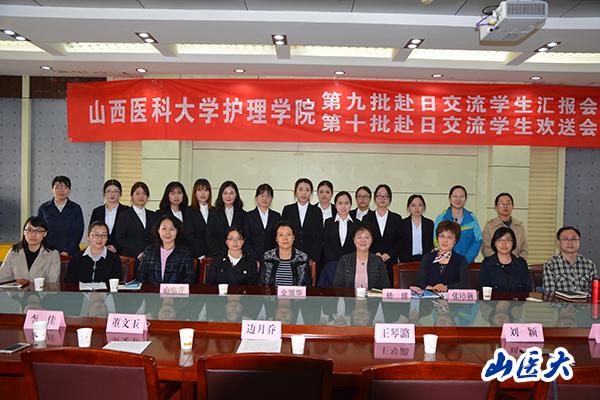 3月20日下午,我校護理學院第九批赴日交流學生匯報會暨第十批赴日交流學生座談會在迎澤校區教學辦公樓13層第二會議室召開,學院院長楊輝、黨委書記金瑞華、副院長張培莉、副院長商臨萍和學院各部門負責人、思想政治輔導員以及全體赴日同學參加了座談會。