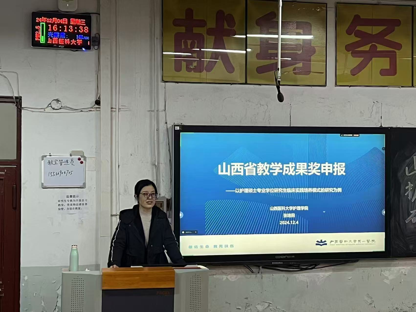 為進一步促進教育教學改革,激發教學創新活力,提升教學質量和水平,12月4日, 山西省省級教學成果二等獎獲得者張培莉教授在學院做了教學成果申報的經驗分享,護理學院全體教師、碩士生導師參加了會議。