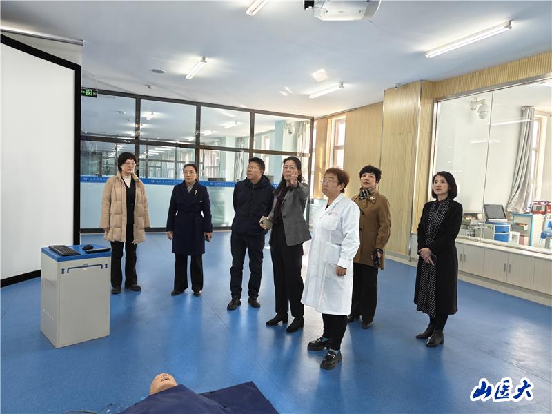 張巖波實地走訪了護理實訓中心,詳細詢問了實訓中心各層功能布局和建設使用情況,聽取了學院就新一輪學科目錄發布以后的設想和布局。