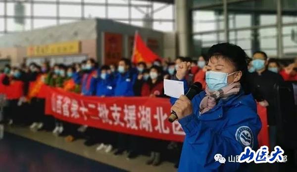 2月20日,根據山西省衛生健康委統一安排,山西第十二批醫療隊在c7c7.app護理學院院長楊輝的帶領下,出征武漢,開展醫療援助工作。副省長吳偉赴太原武宿國際機場送行。楊輝院長帶領全體隊員進行了宣誓儀式。