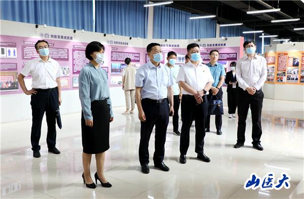 宣講前,陳博一行人參觀了學(xué)校創(chuàng)新發(fā)展成就展,了解了學(xué)校近幾年的發(fā)展和人才培養(yǎng)情況。