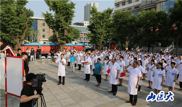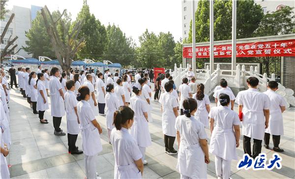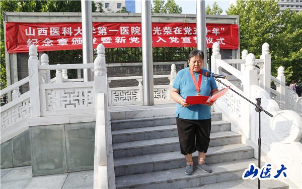 7月1日,在中國共產(chǎn)黨成立101周年之際,第一醫(yī)院在1號住院樓前廣場舉行“光榮在黨50年”紀(jì)念章頒發(fā)暨新黨員入黨宣誓儀式。全體院黨委委員,各黨支部書記、副書記,獲得“光榮在黨50年”紀(jì)念章的老黨員代表和2022年新入黨的職工黨員共計100余人參加了儀式。院黨委副書記、院長張瑞平主持儀式。