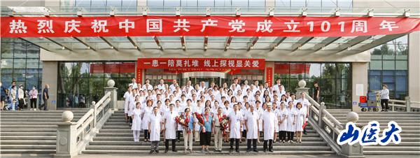 儀式在《沒有共產(chǎn)黨就沒有新中國》的合唱聲中圓滿結(jié)束,出席儀式的全體人員在1號住院樓前合影留念。