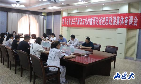 思想政治理論課教師武宏麗、尹俊芳、樊小軍、范曉雁、白靜,分別代表各教研室匯報(bào)了《中國(guó)近現(xiàn)代史綱要》《毛澤東思想和中國(guó)特色社會(huì)主義理論體系概論》《馬克思主義基本原理概論》《思想道德與法治》和《形勢(shì)與政策》課程的教學(xué)設(shè)計(jì)和融入思路,結(jié)合各自課程的特點(diǎn),把習(xí)近平總書記關(guān)于廉潔文化的重要論述有效轉(zhuǎn)化為教學(xué)內(nèi)容和育人成效。