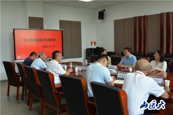 7月13日下午,省司法廳黨委委員、副廳長李云濤,司法廳機關黨委專職副書記李紅艷,司法廳司鑒處仲裁管理處副處長趙亞娣一行3人深入我校司法鑒定中心開展司法鑒定黨建工作調研。校黨委副書記王宏偉出席會議并講話,法醫學院黨政班子成員、司法鑒定中心全體黨員參加會議。會議由法醫學院院長、司法鑒定中心主任贠克明主持。