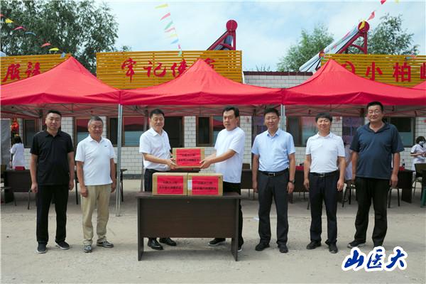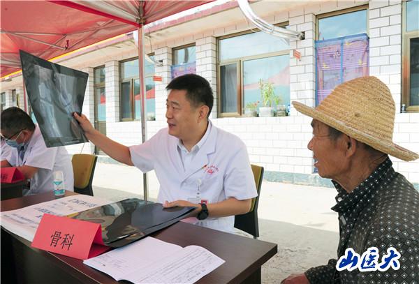 趙斌十分重視小柏峪村群眾的健康狀況。他代表第二醫院向小柏峪村贈送了三箱多發病、慢性病治療的常用藥品,并在抵達小柏峪村的第一時間,就不顧旅途勞頓,帶領著專家團隊為在村委會大院翹首等候的百姓開展了義診宣教活動。